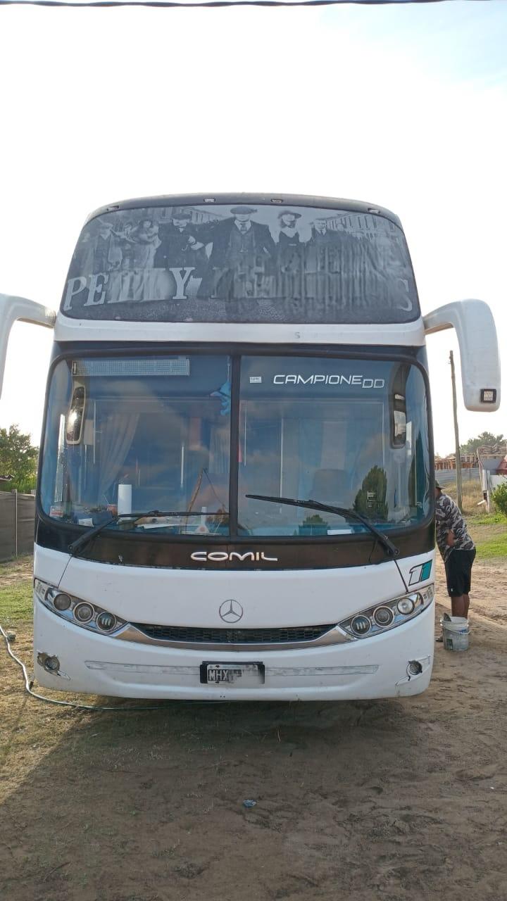 Año 2013 Carrocería Comil Sin detalles estéticos Motor Mercedes Benz o500 Tiene 1.400.000 Kms Muy buen mantenimiento Asientos 60 Semi Cama Asientos cuidados Cabina cuidada Audio y video Aire y calefaccion Bar y baño Cubiertas 80% Contado U$S Aceptamos auto/camioneta!! Listo para transferir!!!