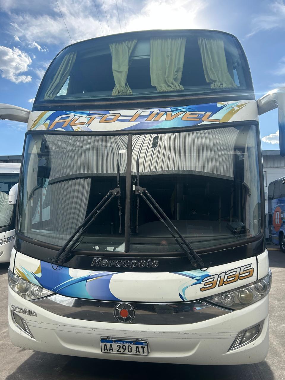 Año 2016 Carroceria Marcopolo G7 Sin detalles esteticos Motor Scania K440 Tiene 700.000kms reales Muy buen mantenimiento Historial de mantenimiento Asientos 60 mix Asientos cuidados Cabina con tunel Cabina con 3 choferes Cabina cuidada Audio y video Bar y baño Aire y calefaccion Engomado completo Vigia de ruedas Contado U$S230.000 Aniticipo U$S125.000 + 18 Cheques de U$S7.762 Listo para transferir!!!
