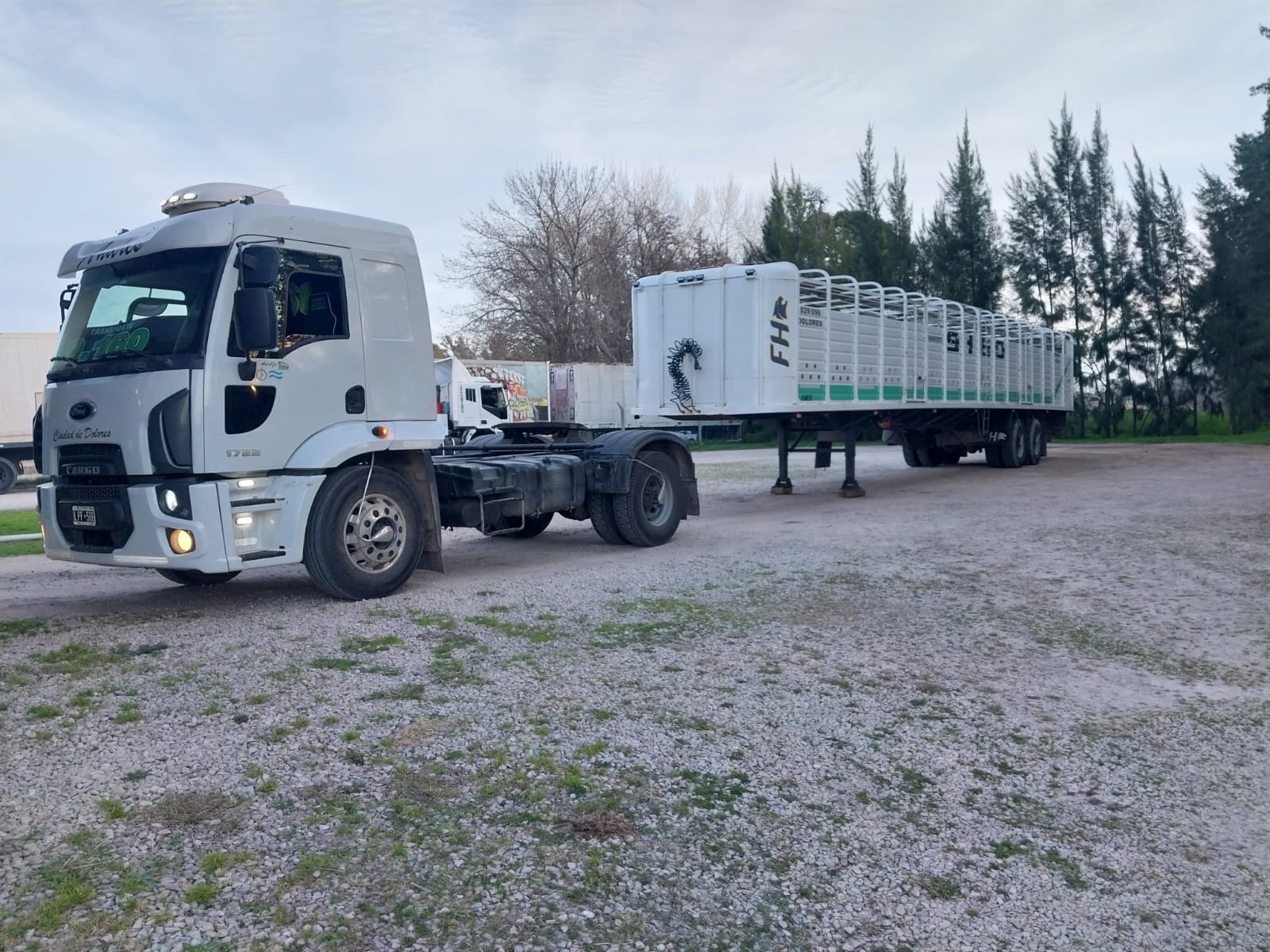 Se vende completo Marca Ford Modelo Cargo 1722 220HP Tractor 4x2 Año 2012 750.000 Kms Cubiertas 50% Vigia en ruedas Vigia en motor VTV Jaula FH Año 2006 15.80 mts Con cubiertas Vigia en rueda Levanta ejes Contado U$S75.000 Service al Día Listo para Transferir ¡Entrega inmediata !
