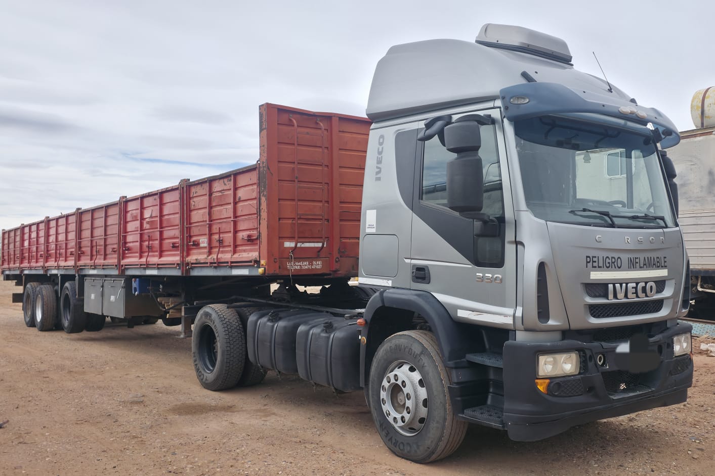 Marca Iveco Modelo Cursor 330 330HP Tractor 4x2 Año 2012 400.000 Kms Cubiertas 80% Excelente de mecánica. VTV al día Service al Día Precio Enganchado $82.500.000 Semi Ombu 2+1 14.50 Mts Baranda y cubiertas para traslado Listo para Transferir ¡Entrega inmediata!